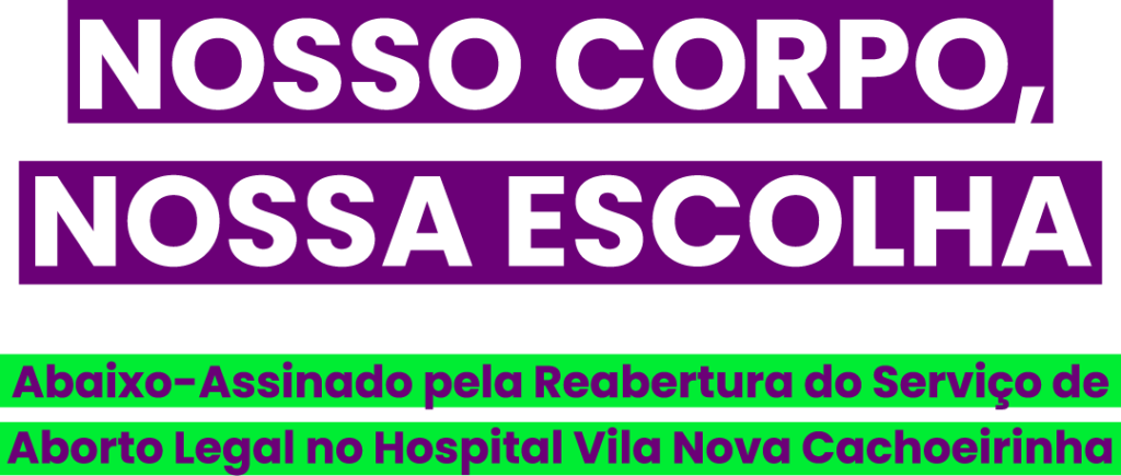 Nós, cidadãs e cidadãos comprometidos com a defesa dos direitos das mulheres e com a garantia de acesso a serviços de saúde reprodutiva, manifestamos nossa profunda preocupação e repúdio diante da interrupção do procedimento de aborto legal no Hospital Vila Nova Cachoeirinha, situado na Cidade de São Paulo.